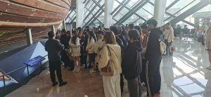 在海洋灾害体验厅,通过观看资料,直观地了解了台风、海啸、风暴潮等海洋灾害的形成原理及其对人类生活的巨大影响;在海洋文化主题空间,仿佛开启了一场穿越时空的旅程,展厅丰富的文物和模型生动再现了人类与海洋的共生关系;“从风帆到行轮”展区,记录了人类航海技术的不断进步与发展,团员们深入了解了从古代帆船到现代邮轮的演变历程;在“海洋与天文”展区,团员们对海洋与天文现象的紧密联系有了更深入的认识。大家深刻体会到海洋力量的不可抗拒性,感受到科技进步对海洋探索的推动作用,更意识到保护海洋生态、防范海洋灾害的重要性。