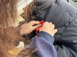 本次活动以“符号传递+创意表达+行动践行”为核心,打造沉浸式防艾教育场景。活动现场向师生发放红丝带,红丝带作为艾滋病防治的国际性标志,象征着对感染者的关心与支持,以及对生命的热爱与对平等的渴望。师生们佩戴红丝带,以此表达防艾的决心。同时,定制了“爱无界,防艾有我”主题的艾滋病红色丝带徽章,这不仅是活动的纪念标识,更成为师生践行防艾责任的流动宣传载体。