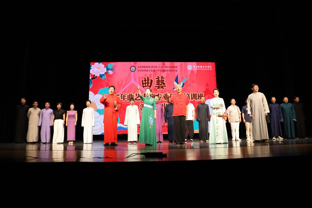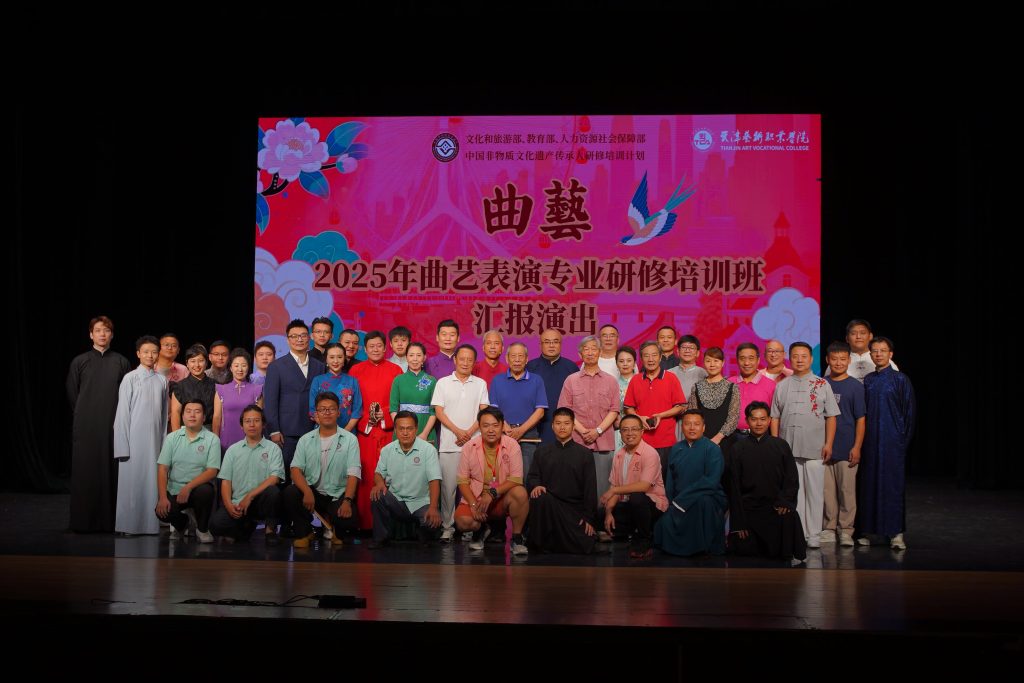 整场演出既守非遗曲艺之“根”,又开时代创新之“花”。这背后,是研修培训班对“非遗传承要与新时代同频”的深刻践行。学员们深挖传统曲艺精髓的同时,又立足当下挖掘新题材、新表达,让京东大鼓讲新事、相声快板倡新风,真正实现非遗“活态传承”。